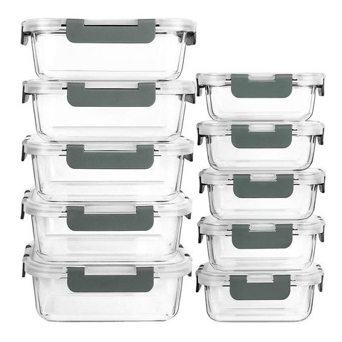 10 Packs Recipientes De Refeição De Vidro Prep Recipientes De Armazenamento De Alimentos De Vidro (370ML 5PK + 1040ML 5PK)
